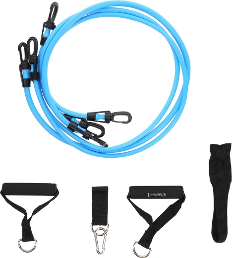 De set weerstandsexpanders HMS TX01 is ontworpen voor functionele training thuis en onderweg. Het deuranker verandert een standaard deur in een bovenste of onderste “katrol”, zodat je rug, borst, armen, benen en core eenvoudig kunt trainen. Dankzij het lage gewicht en de meegeleverde draagzak neem je de set overal mee naartoe en houd je je trainingsroutine zonder compromissen vol.