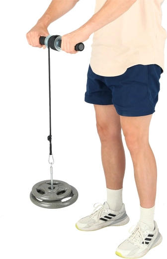 Door aan de handgrepen te draaien rol je de kabel met gewicht op en belast je de spieren over het volledige bewegingsbereik voor maximaal effect.