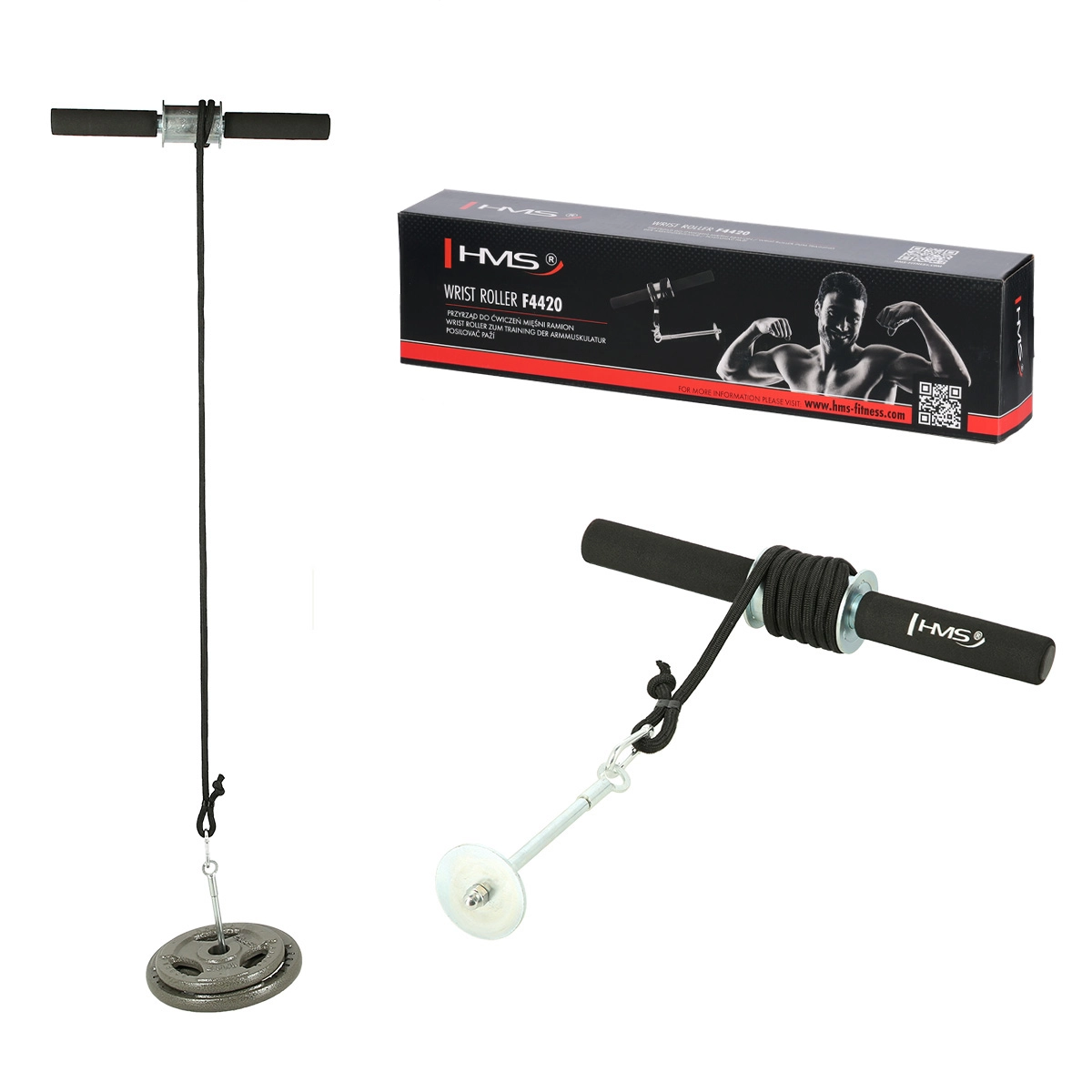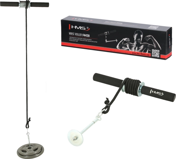 De HMS F4420 is een compacte onderarmtrainer voor effectieve training van kracht en uithoudingsvermogen van polsen en grip. Het principe is eenvoudig en doeltreffend: door de handgrepen te draaien rol je de kabel met aangesloten gewichten op, waardoor je een constante belasting over de hele bewegingsbaan creëert. Ideaal voor sporters, crossfit, klimmers en thuisfitness.