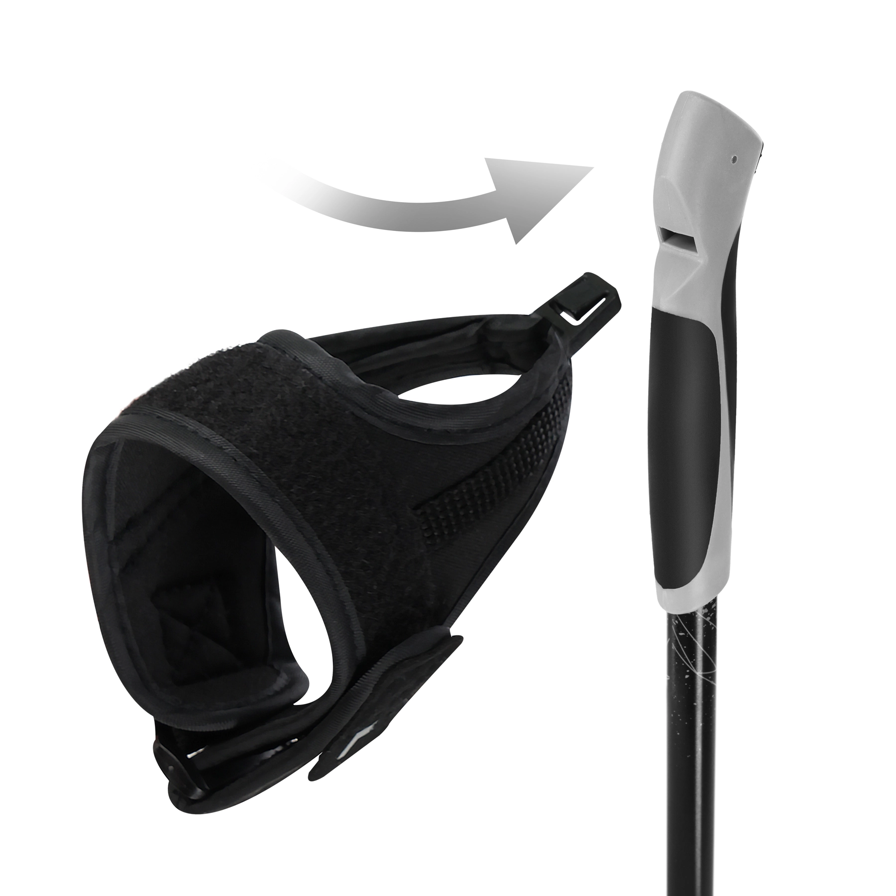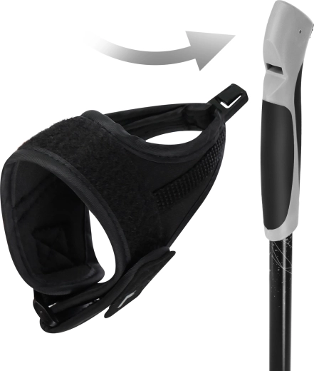 Ergonomische handgrepen van kunststof en TPE met antislip oppervlak en verstelbare polsbanden zorgen voor een zekere grip, ook tijdens langere tochten. In de set vind je twee sets rozetten voor verschillende omstandigheden en een praktische draagtas voor eenvoudig transport.