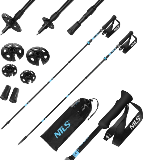 Lichte, compacte en tegelijk uitzonderlijk duurzame trekkingstokken NILS TK8604 combineren de sterkte van aluminium 7075 met een opvouwbare constructie in drie delen. Dankzij de telescopische lengteverstelling, robuste klemvergrendelingen, ergonomische handgrepen van EVA-schuim en de uitgebreide set accessoires (schoteltjes, rubberen doppen, draagzak) bieden ze zekerheid, comfort en veelzijdig gebruik in uiteenlopend terrein.