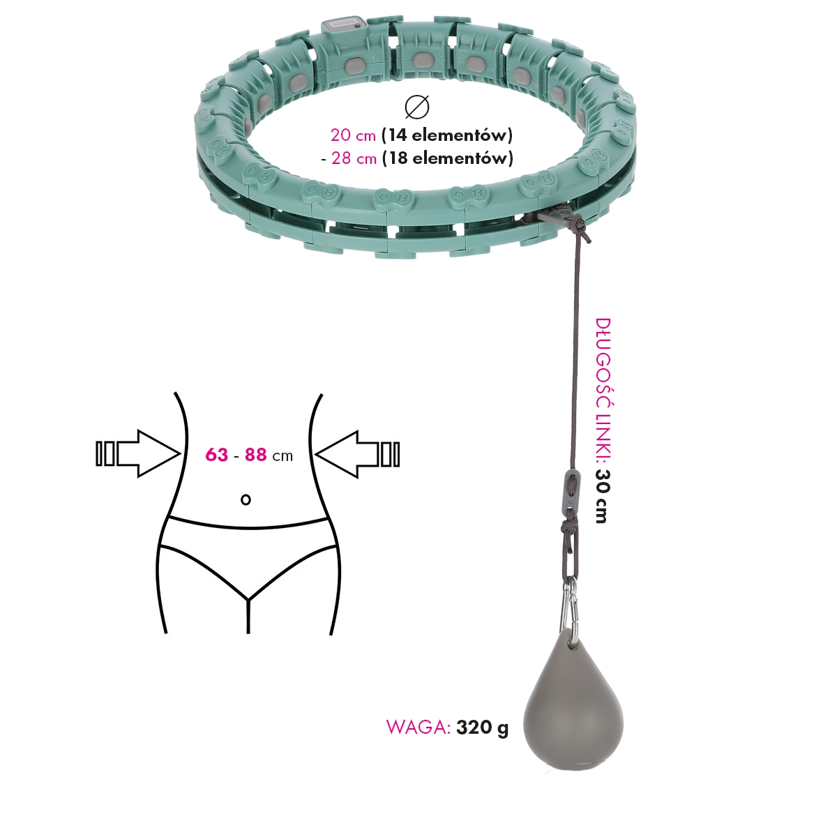 De slimme massage hula hoop bestaat uit modulaire segmenten die je simpelweg vastklikt volgens je taillemiddel. De binnenste massagepunten stimuleren op een aangename manier de buik- en heupzone en dempen tegelijkertijd trillingen. Dankzij het roterende gewicht op lagers krijg je een vloeiende beweging en hogere trainingsefficiëntie, die je bepaalt met de snelheid van hoepelen en de lengte van het koord.