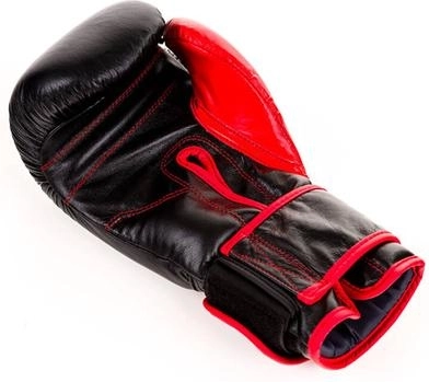 Deze leren handschoenen zijn ontworpen voor intensieve training en sparren. Het gladde, duurzame rundleer zorgt voor een lange levensduur en een prettig gevoel, terwijl de gevormde vulling van gehard PUR-schuim de knokkels beschermt en de schokabsorptie verbetert. De brede en stevige dubbele klittenbandstrap stabiliseert de pols, voorkomt draaien en verkleint het blessurerisico.
