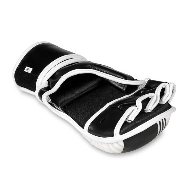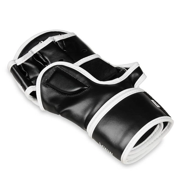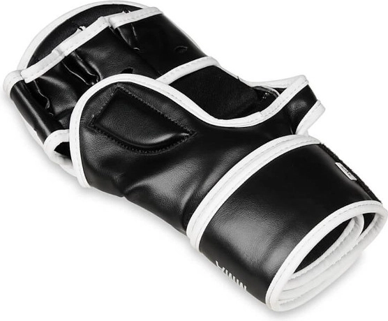 Voor veiliger trainen zijn de handschoenen voorzien van een beschermende bedekking van de bovenzijde van de duim en een lange, brede klittenbandsluiting voor stabiele polsfixatie. De gladde binnenvoering maakt snel aan- en uittrekken tijdens intensieve rondes gemakkelijk. De ergonomische vorm ondersteunt de natuurlijke vingerbuiging en comfort bij zowel grappling als striking.