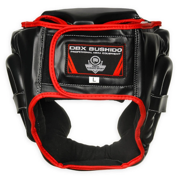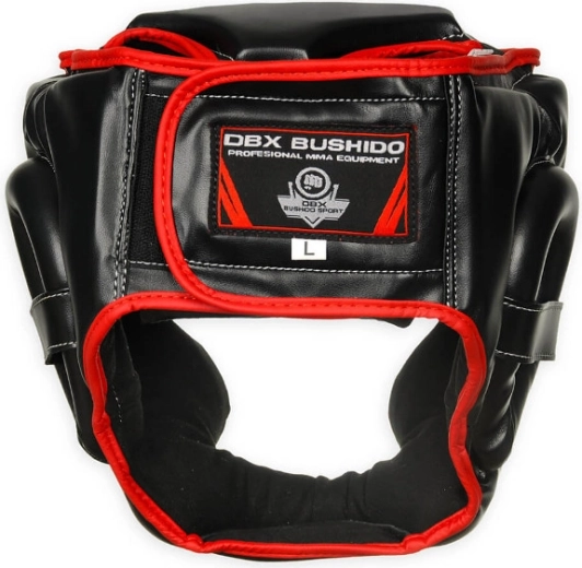 DBX BUSHIDO ARH-2190R is een trainingshelm ontworpen volgens veiligheidsnormen voor boksen en contactsporten. Verstevigd synthetisch leer met verhoogde elasticiteit en hoogwaardig dicht schuim zorgen voor uitstekende schokabsorptie, een lange levensduur en comfort, ook tijdens langere trainingen. De open constructie rond de ogen behoudt overzicht en perifeer zicht.