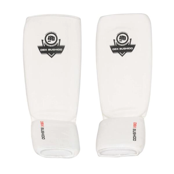 Elastische DBX BUSHIDO scheen- en wreefbeschermers in het wit bieden betrouwbare bescherming tijdens trainingen. Dankzij de mix van polyester en katoen zijn ze zacht aanvoelend, sluiten ze perfect aan en hun slijtvaste foamvulling absorbeert effectief stoten en trappen.
