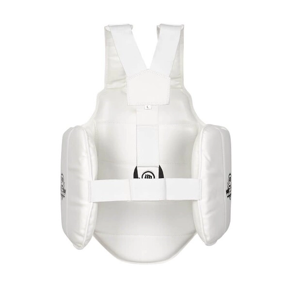 De praktische sluiting met een elastische band en klittenband maakt snel aantrekken en nauwkeurige afstelling voor verschillende lichaamstypes mogelijk. Brede zijdelingse bedekking beschermt de ribben en heupen beter, waardoor de beschermer geschikt is voor het trainen van technieken op middellange en korte afstand. Een ideale keuze voor zowel beginners als gevorderde sporters.