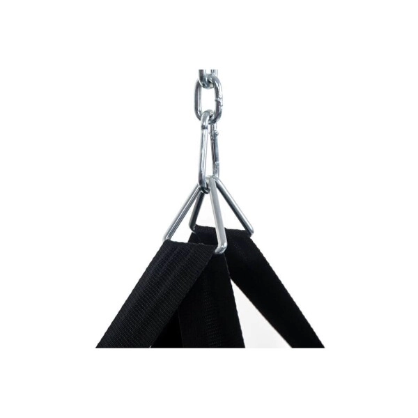 Robuuste banden, stalen koppelingen en ketting zorgen voor een stabiele en veilige bevestiging van de zak tijdens de training.