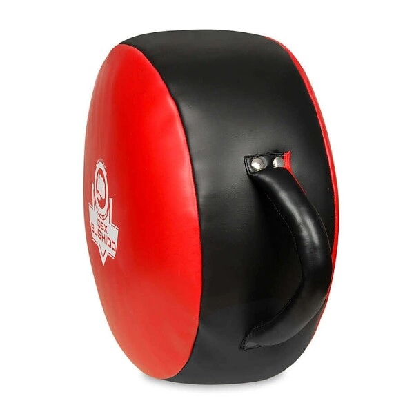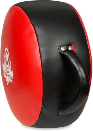 De ronde schildpad DBX BUSHIDO (40 × 20 cm) is ontworpen voor veeleisende trainingen in boksen en vechtsporten. De buitenlaag van versterkt synthetisch leer Rexion garandeert hoge duurzaamheid en een lange levensduur, terwijl de vulling van textielvezels de energie van stoten en trappen effectief absorbeert. Twee stevige handgrepen bieden de trainer een zekere grip en betere controle over het doel.