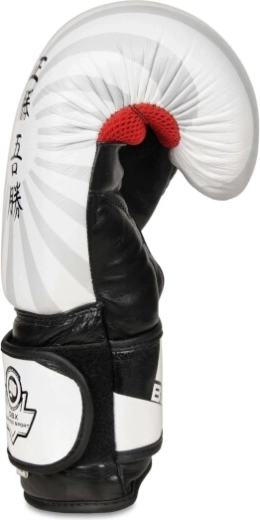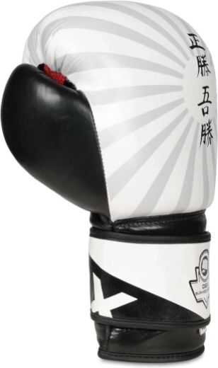 De brede klittenbandmanchet stabiliseert de pols en vermindert het risico op blessures, terwijl de duim met een riempje veilig is verbonden met de rest van de handschoen. Het “Japan”-design valt op met een witte basis, grijze stralen en een opschrift in kanji – een stijl die indruk maakt in de ring en in de sportschool. Elk paar is handgemaakt en getest in samenwerking met bokstrainers volgens veiligheidsnormen om te voldoen aan de eisen van regelmatige en intensieve training.