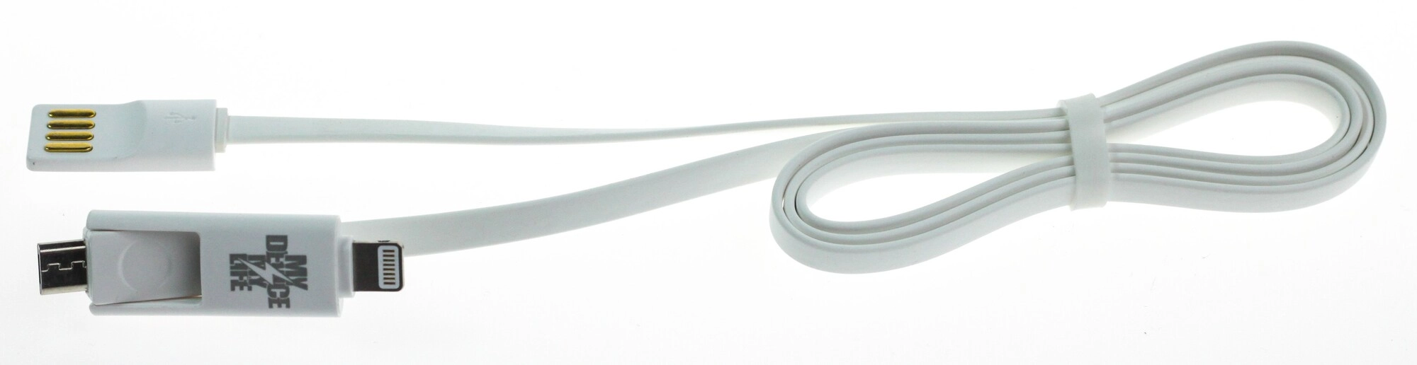 Micro USB met Lightning-adapter dekt zowel opladen als gegevensoverdracht voor Android-apparaten en iPhone 5/6 – zonder meerdere kabels mee te hoeven nemen.