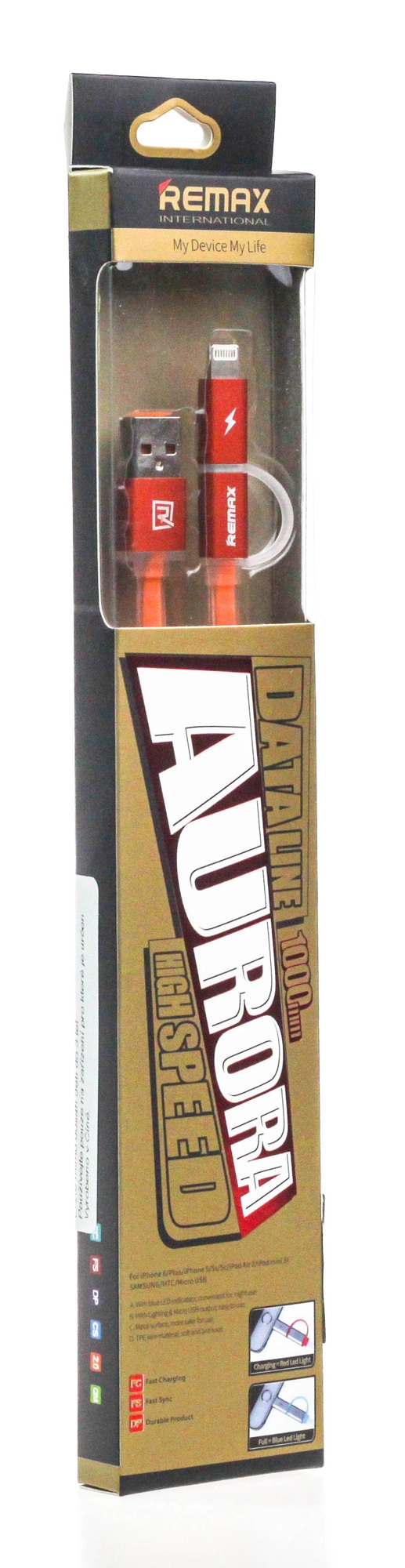 Nooit meer zoeken naar de juiste kabel. Remax Aurora 2-in-1 combineert USB‑A met twee verwisselbare tips, Lightning en micro‑USB, zodat je eenvoudig zowel Apple‑telefoons en ‑tablets als micro‑USB‑apparaten kunt opladen en synchroniseren. De platte kabelconstructie minimaliseert in de knoop raken en maakt hanteren in tas of zak makkelijker.