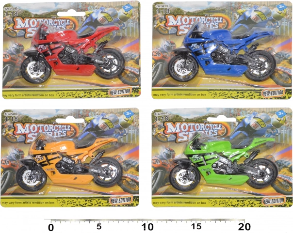Racefiets 11 cm met vrijloopwielen voor soepel rijden. Vier kleuren: blauw, groen, rood, geel. Geweldig speelgoed voor kleine racers.