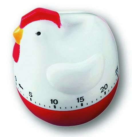 Stijlvolle en praktische TFA keukentimer in de vorm van een kip wordt je betrouwbare hulp bij koken, bakken en het bereiden van koffie of thee. Eenvoudige mechanische bediening zonder batterijen en een maximale instelling tot 60 minuten zorgen voor nauwkeurige tijdsbewaking.