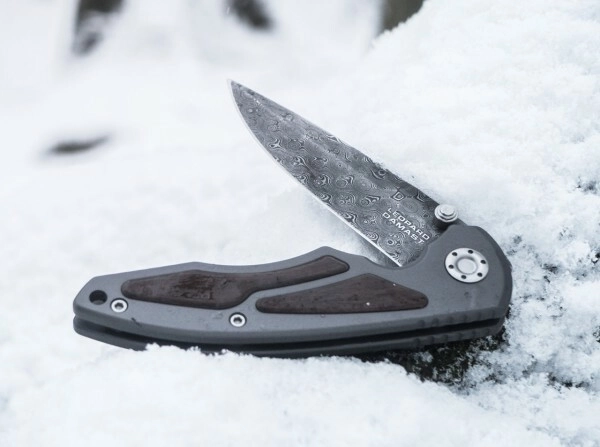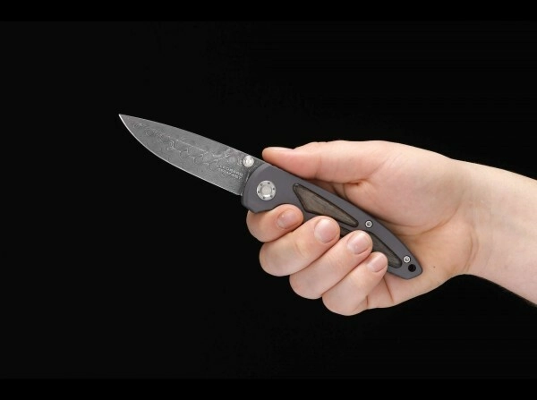 De handgreep van grijs geanodiseerd aluminium met inlays van exotisch Ziricote-hout biedt een zekere grip en een elegant uiterlijk. De opening verloopt soepel dankzij de dubbelzijdige duimstuds, terwijl de betrouwbare Linerlock voor veiligheid zorgt. Een praktische broekclip vergemakkelijkt het dragen en zorgt voor directe toegang.
