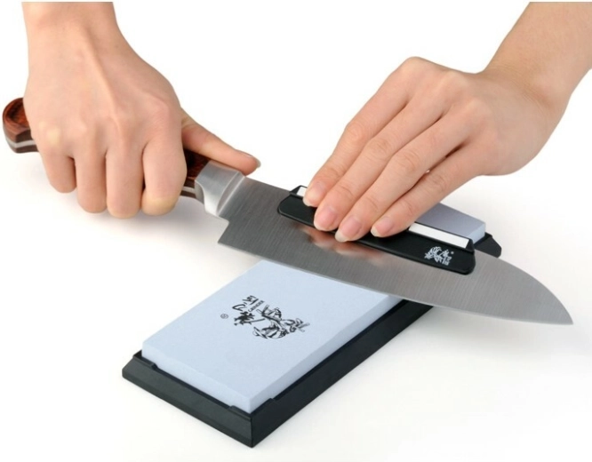 Kwalitatieve Taidea slijpsteen met een korrel van 240 grit voor snel vormen van de snede en het herstellen van de slijphoek bij stompe messen en gereedschap. Gemaakt van duurzaam korund (aluminiumoxide), met een anti-slip rubberen basis voor veilig werken. Te gebruiken met water of olie en kan zonder zorgen langdurig in water worden bewaard.