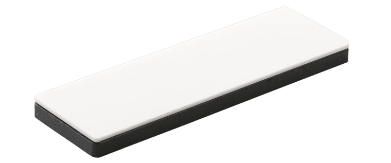 - Donkergrijze zijde 1 µm (synthetische saffier), witte zijde 0,1 µm (fijne keramiek)