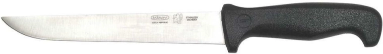 Universeel koks- en slagersmes MIKOV BUTCHER 20 cm voor dagelijks gebruik in huis en werkplaats. Biedt een versmalde lemmetvorm van roestvrij staal 425 met gladde snede en hoge snijprestaties. Dankzij het ergonomische handvat van duurzaam zwart kunststof ligt het comfortabel in de hand en zorgt het voor veilig werken. Gecertificeerd voor contact met levensmiddelen volgens EU-normen. Gemaakt in de Tsjechische Republiek – Mikulášovice.