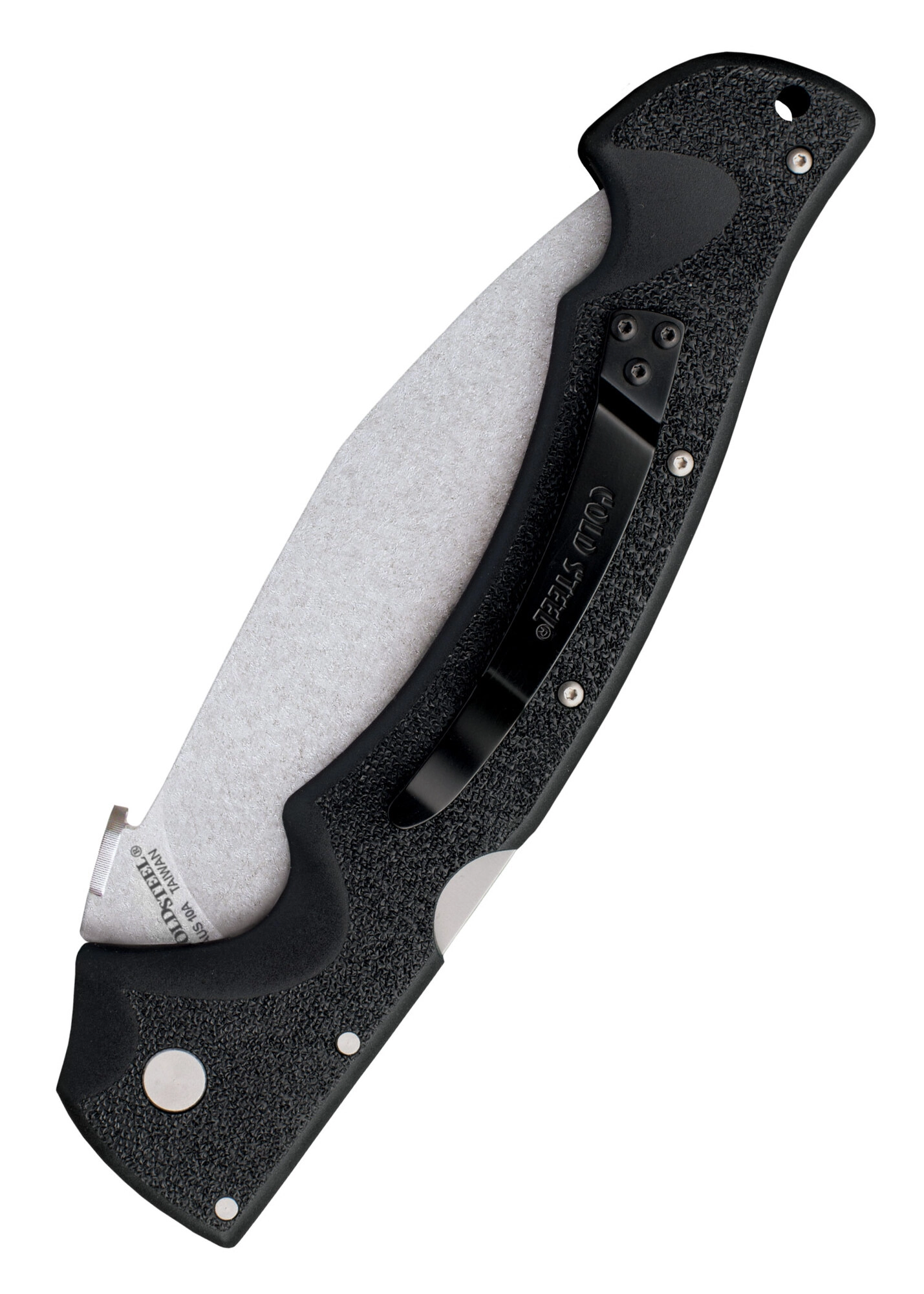 Het model Cold Steel Rajah II levert de prestaties van een grote kukri in een compact vouwformaat. Japans staal AUS-10A met een uitstekende balans tussen taaiheid en slijtvastheid, aangevuld met een stonewash oppervlak, maskeert krassen beter en vermindert de wrijving tijdens het snijden. De kukri-geometrie maakt efficiënt hakken en diepe sneden mogelijk met minimale inspanning.