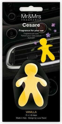 De design autoparfum Mr & Mrs Cesare Vanilla maakt de autokabine gezelliger en verandert elke dagelijkse rit in een aangenaam ritueel. Zoet en warm vanille met een oosters accent wekt een gevoel van comfort en harmonie op, zonder opdringerig te zijn.