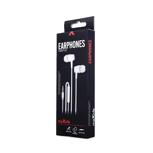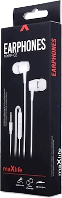 Lichte en comfortabele bekabelde oordopjes Maxlife MXEP-02 in het wit voor dagelijks luisteren onderweg. Ze bieden helder geluid, een geïntegreerde microfoon voor handsfree bellen en een universele 3,5mm jack. Dankzij de 1,2 m kabel heb je bewegingsvrijheid en een stabiele verbinding zonder onderbrekingen.