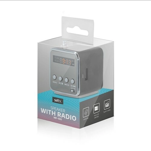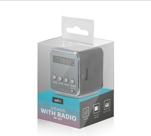 Compacte draadloze luidspreker SETTY MF-100 met FM‑radio biedt verrassend helder geluid, een duurzame aluminium behuizing en handig afspelen vanaf microSD-kaart en USB-flashstation. Dankzij de ingebouwde oplaadbare batterij geniet je overal van muziek; het LCD‑display maakt bediening en overzicht van zenders en tracks eenvoudig.