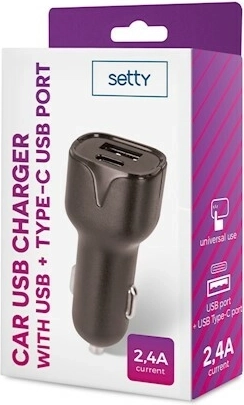 Praktische en compacte SETTY autolader met USB- en USB‑C-uitgangen voor snel en veilig opladen van je apparaten tijdens het rijden. Ondersteunt 2,4 A voor efficiënt bijladen en maakt het mogelijk om twee apparaten tegelijk op te laden. Het elegante zwarte design past perfect bij het interieur van elke auto.