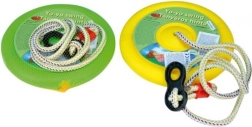 De set bevat een comfortabele zitting, een sterk touw (ca. 175 cm) en een ophangelement – de montage is snel en eenvoudig. De aanbevolen ophanghoogte van de zitting is 35–59 cm boven de grond. Het product is gemaakt van licht en duurzaam kunststof, voldoet aan CE en EN 71 en is bedoeld voor kinderen vanaf 3 jaar. Gebruik altijd onder toezicht van een volwassene.