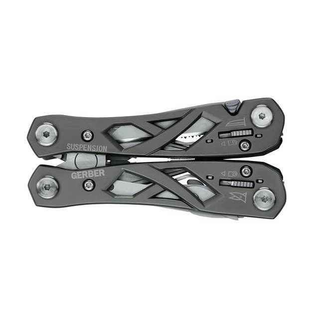 Gerber Suspension is een betrouwbare multitool, ontworpen voor veelzijdig gebruik thuis, in de werkplaats en in het veld. De geskeletteerde constructie van roestvrij staal vermindert het gewicht en verhoogt de duurzaamheid, terwijl het Saf.T.Plus-systeem de afzonderlijke tools vergrendelt voor veiliger werken. De vlinderopening maakt snelle inzet mogelijk wanneer je het gereedschap nodig hebt.
