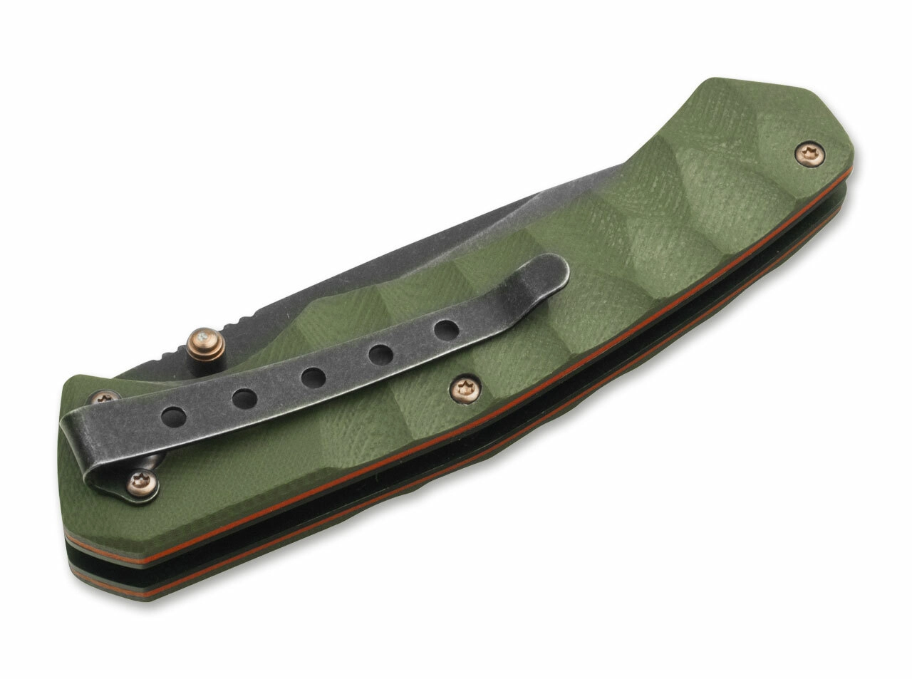 Dankzij de tweezijdige duimpinnen open je het mes comfortabel met één hand, terwijl de betrouwbare Linerlock-vergrendeling voor veiligheid zorgt. De getextureerde G10-handgreep in olijfgroen garandeert een zekere en comfortabele grip, zelfs onder zwaardere omstandigheden. De clip maakt discreet dragen aan broekzak of riem mogelijk.