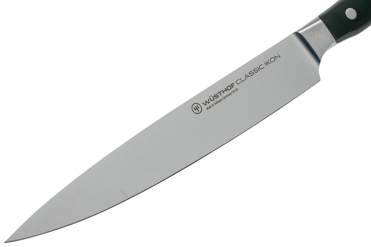 Het WÜSTHOF Classic Ikon hammes (20 cm) is een veelzijdige hulp voor precies snijden van ham, vlees en grotere stukken fruit en groenten. Het lemmet van hoogwaardig roestvrij X50CrMoV15-staal behoudt zijn scherpte langdurig en glijdt dankzij de doordachte geometrie moeiteloos door ingrediënten zonder te scheuren.
