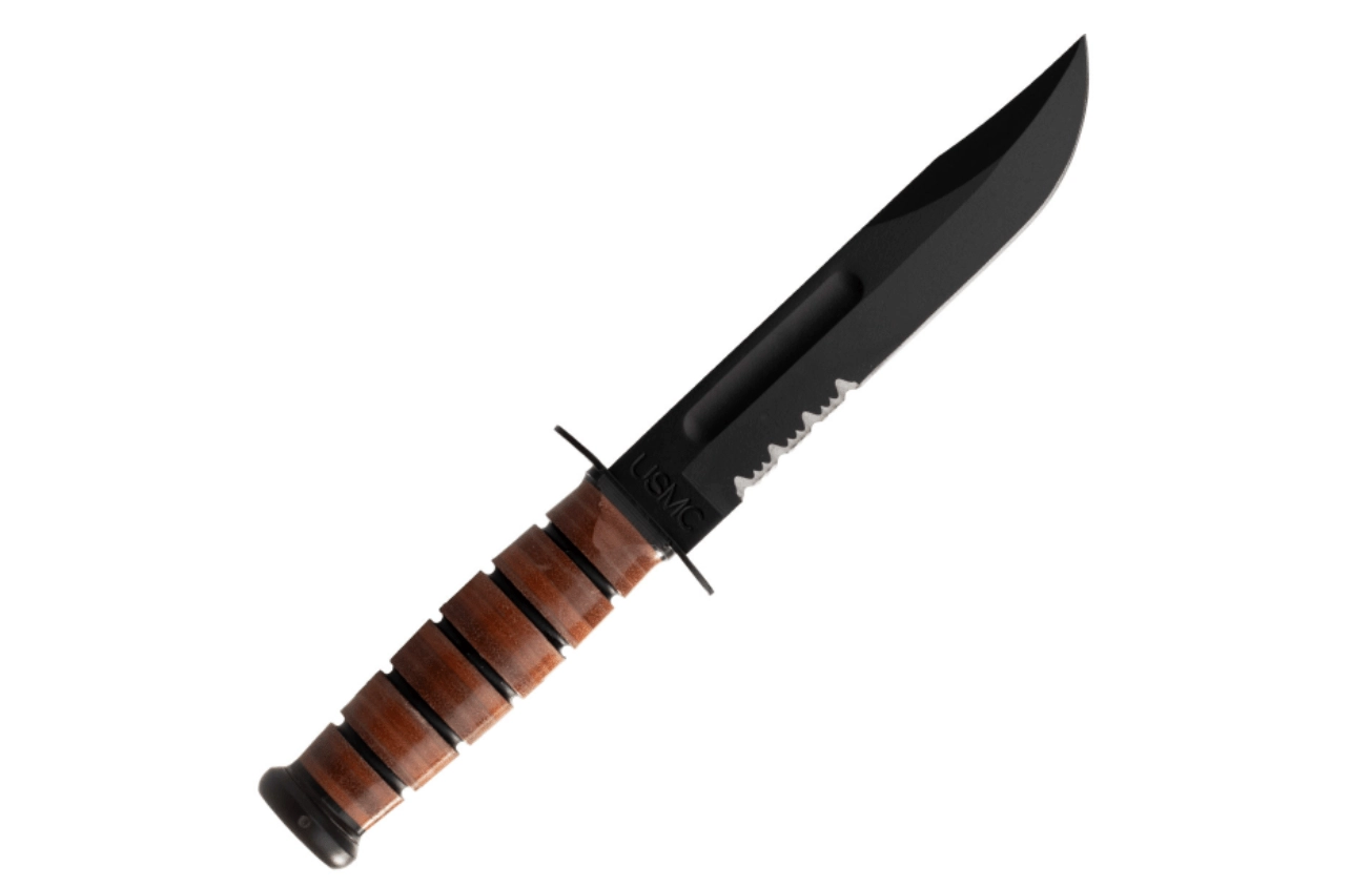 Het KA-BAR USMC-mes is een bewezen gereedschap voor outdoor, kamperen en bushcraft. Het clip point-lemmet met gedeeltelijk gekartelde snede beheerst zowel precieze sneden als agressief doorsnijden van touwen, riemen of vezels. De beschermende zwarte coating vermindert schittering en verhoogt de corrosiebestendigheid.