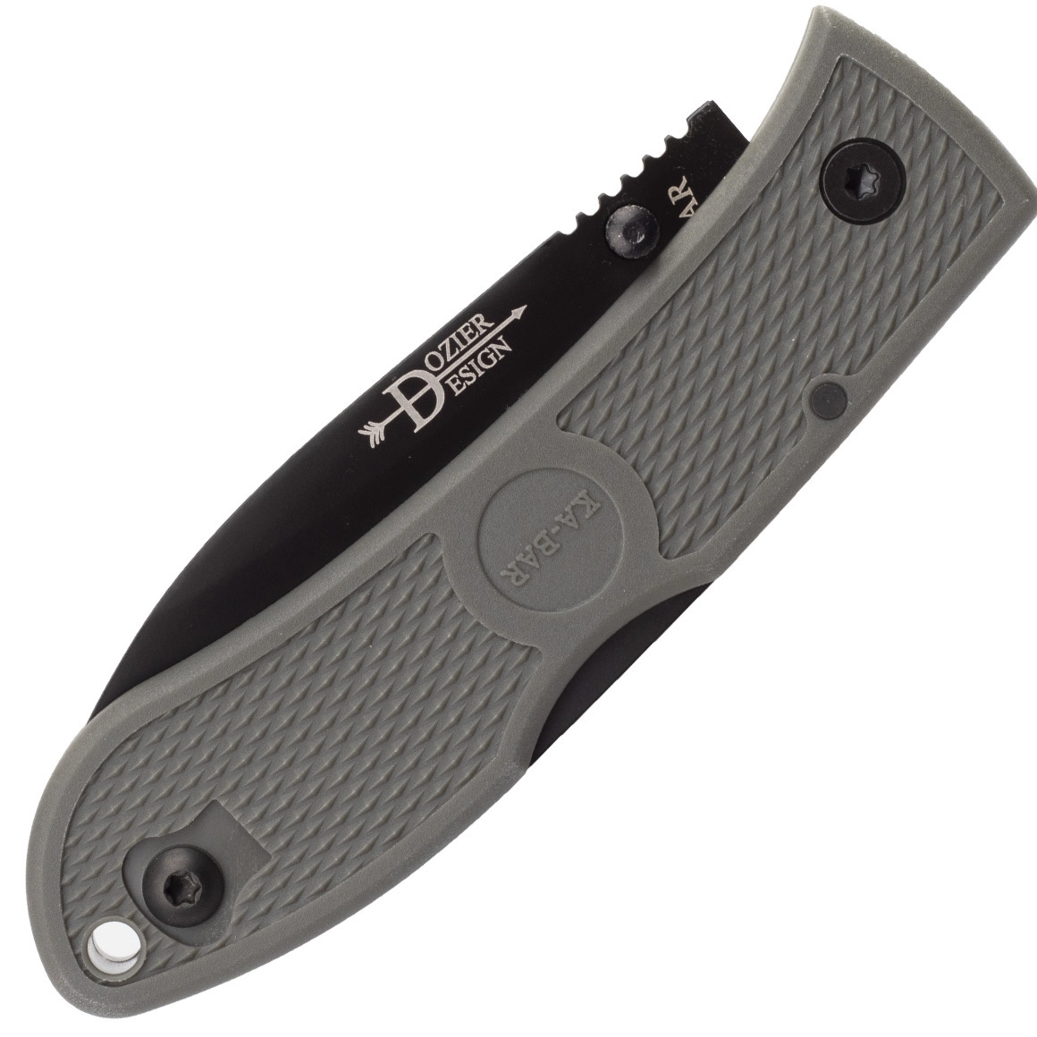 De KA-BAR Dozier Hunter is een betrouwbaar vouwmes voor dagelijks gebruik. Het biedt soepele en precieze snedes dankzij AUS-8A staal met een zwarte coating die schittering vermindert en de corrosiebestendigheid verhoogt. De duimknop zorgt voor éénhandsopening, terwijl de Back Lock het lemmet veilig in open positie vergrendelt.