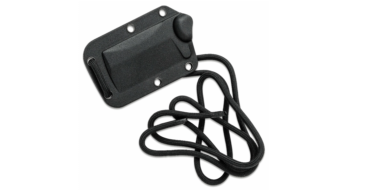 Het getextureerde Micarta‑handvat in zwart‑groene uitvoering biedt een veilige en comfortabele grip, ook bij langer werken. In de set zit een lichte kunststof schede met de mogelijkheid tot ophangen aan het meegeleverde paracord koord voor discrete en snelle toegang.