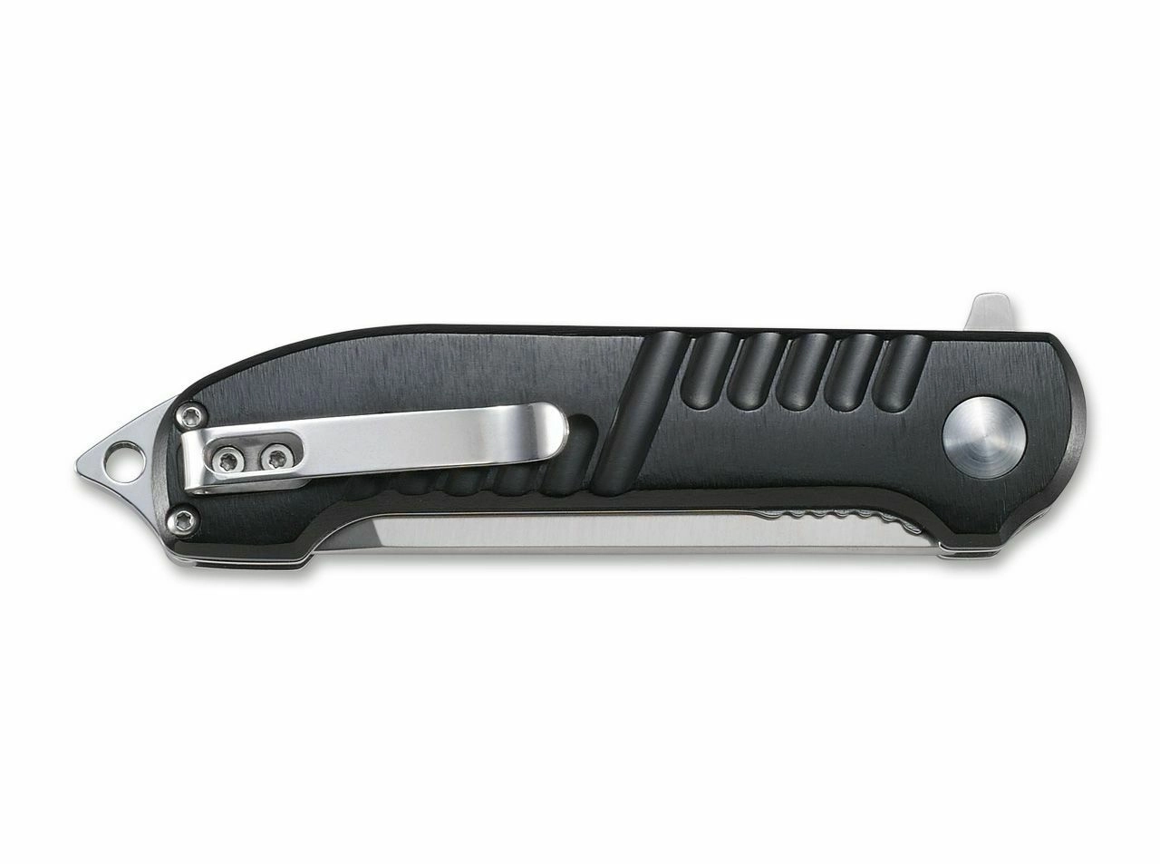 Openen gebeurt met de flipper met assist, terwijl IKBS-lagers zorgen voor een soepele en snelle loop. De veiligheid tijdens het werk wordt ondersteund door de betrouwbare linerlock vergrendeling. Het zwart geanodiseerde aluminium handvat met textuur ligt uitstekend in de hand en is voorzien van een clip voor dragen in de zak, een koordoog en een punt voor noodglasbreken.