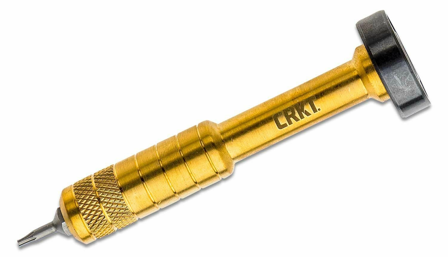 Messing schroevendraaier met kogelgelagerde draaikop en gekartelde grip voor stabiliteit en controle bij fijn werk.