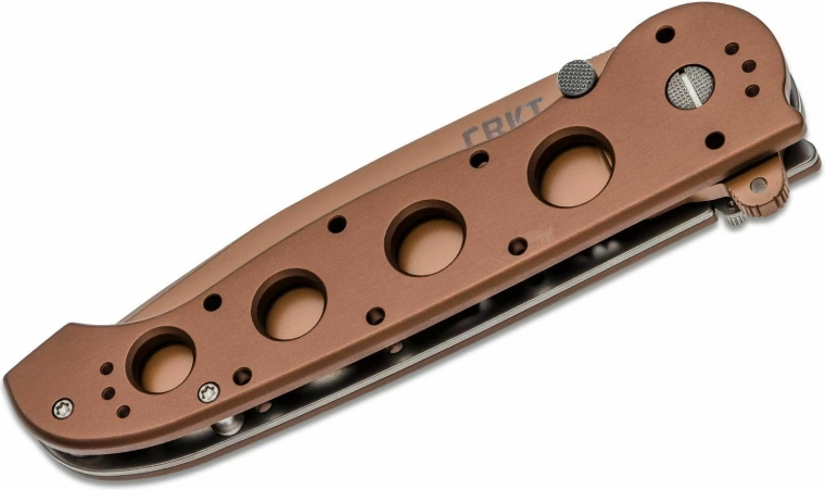 De handgreep van geanodiseerd 6061-T6 aluminium in koperachtige tint biedt een laag gewicht, zekere grip en ontlastingsgaten voor betere balans.