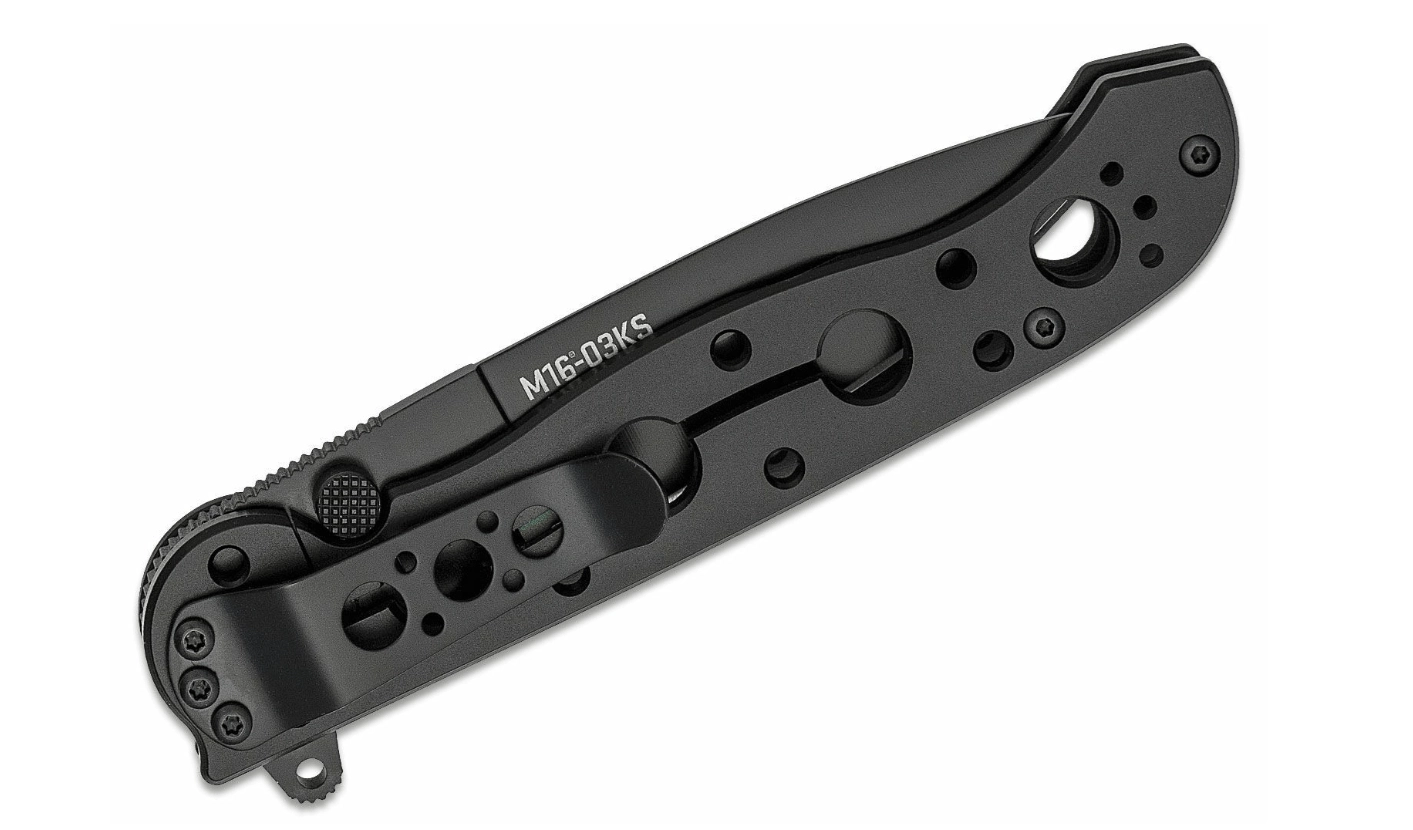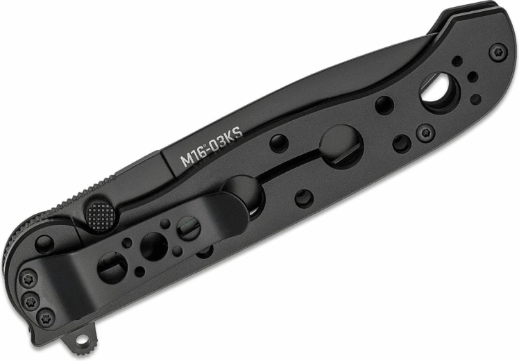 De CRKT M16-03KS is een beproefd tactisch vouwmes ontworpen voor dagelijks gebruik. Het lemmet met gladde snede in Spear Point-vorm van hoogwaardig roestvast 12C27-staal met zwarte coating biedt uitstekende snijeigenschappen en corrosiebestendigheid. Dankzij de flipper en dubbele duimpinnen opent het mes snel en intuïtief met één hand, terwijl de stevige Frame Lock het lemmet veilig vergrendelt tijdens het werk.
