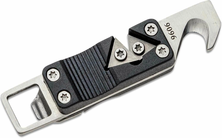 De compacte multifunctionele tool CRKT Micro Tool & Keychain Sharpener houdt je mes overal en altijd scherp. Dankzij de geïntegreerde “V”-slijper is slijpen snel en eenvoudig, aangevuld met een platte schroevendraaier, mini tapesnijder en flesopener. De lichte en duurzame constructie met sleutelring zorgt voor comfortabel dagelijks dragen.