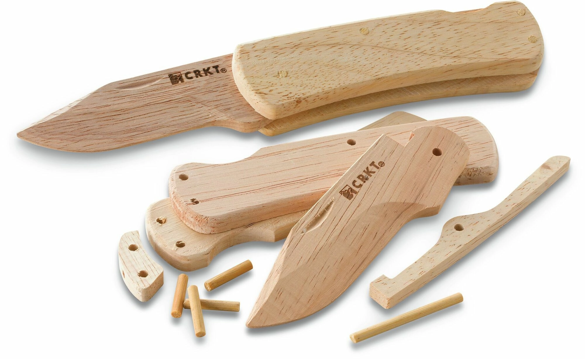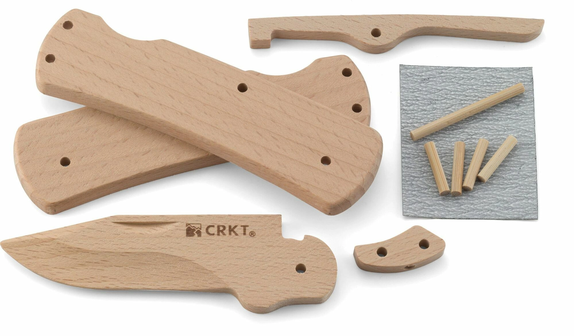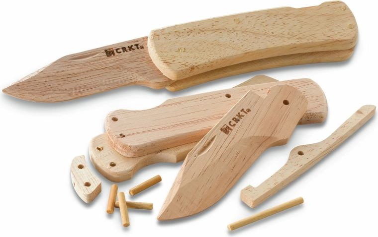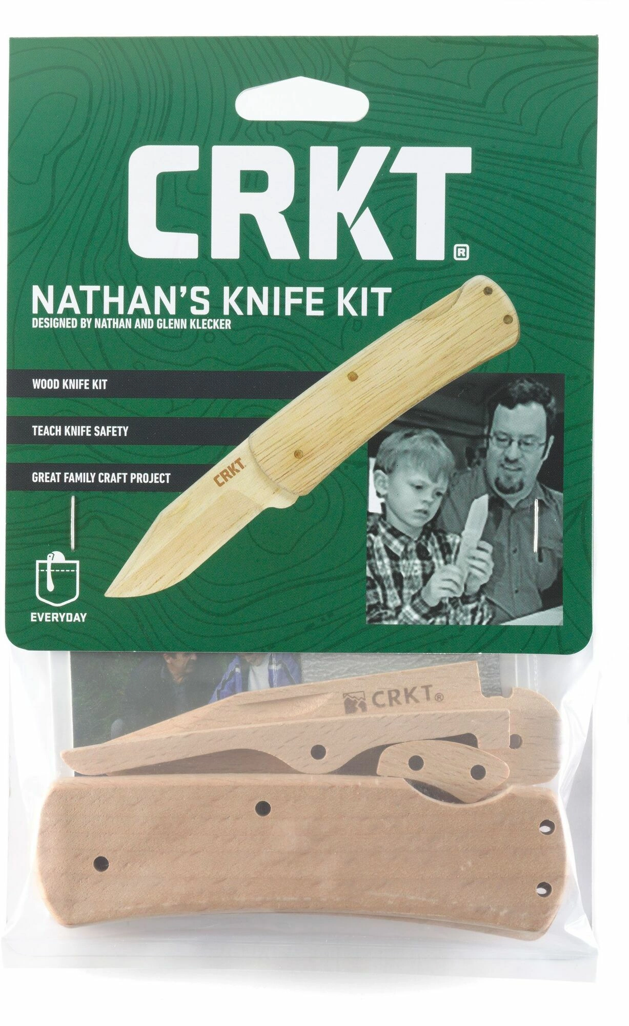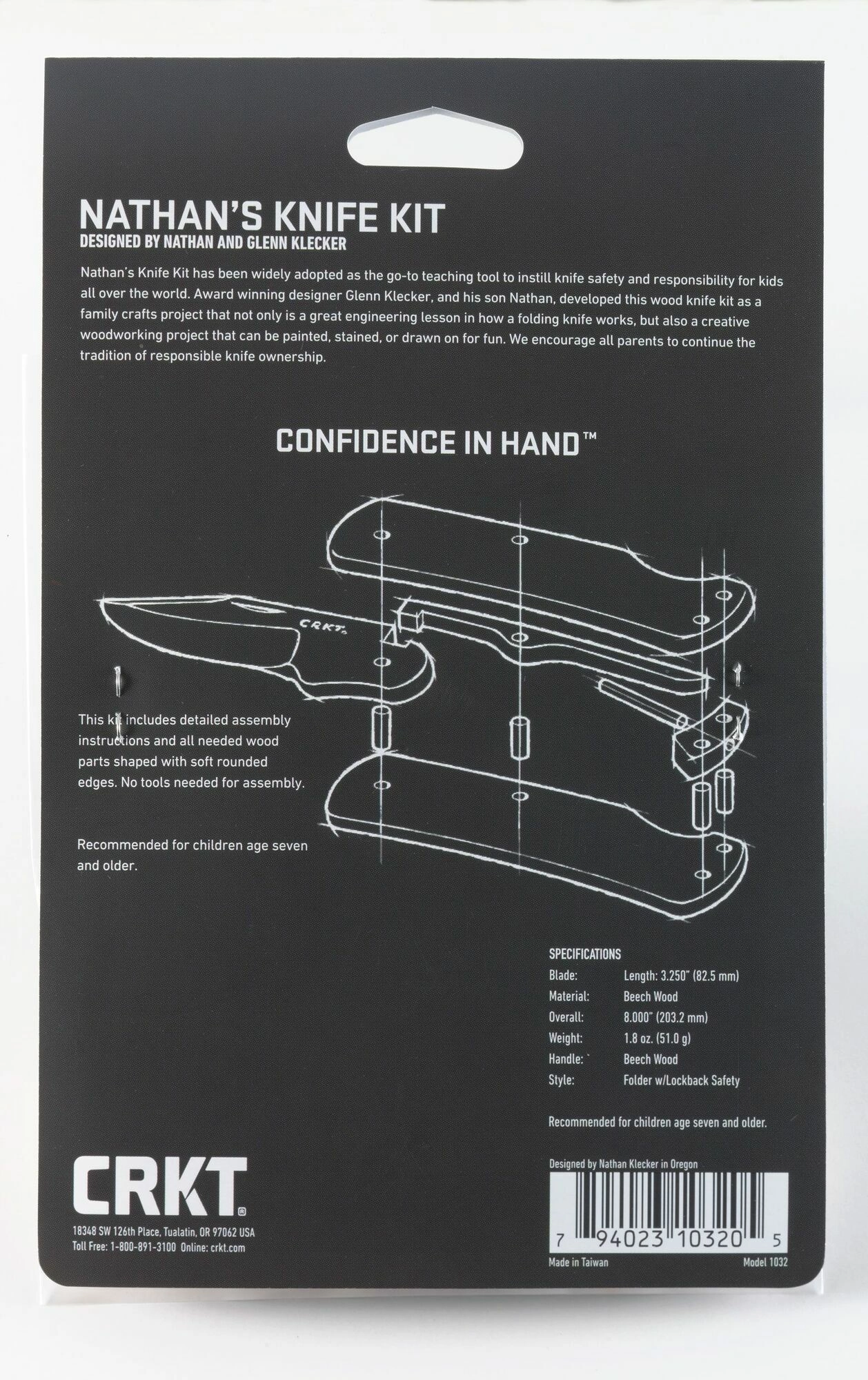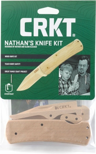 Leer de principes van vouwmessen veilig en speels. De bouwset CRKT Nathan's Knife Kit, geïnspireerd door het idee van de zevenjarige Nathan Klecker, bevat voorgestructureerde onderdelen met voorgeboorde gaten en alles wat nodig is voor de montage. Het in elkaar zetten is eenvoudig, vereist geen gereedschap en resulteert in een volledig functioneel model van een houten zakmes.