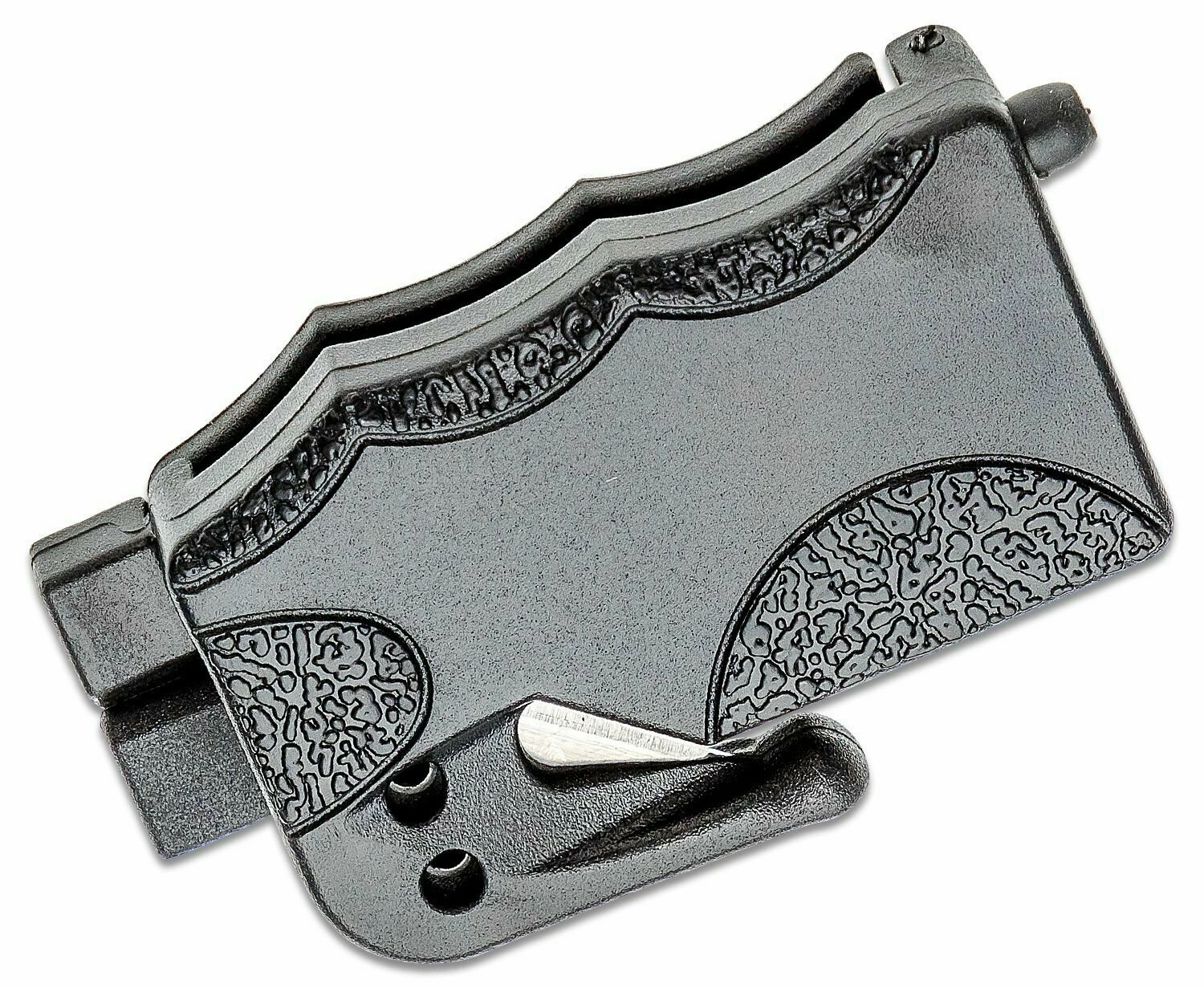 Compact noodhulpmiddel CRKT Exitool, ontworpen door Russ Kommer voor snelle hulp in noodsituaties. Bevestig het aan een standaard veiligheidsgordel met de inklapbare clip en heb zo altijd een gordelsnijder en een ruitbreker van wolfraamcarbide met beschermkap bij de hand. Het roestvrijstalen mes met hoog koolstofgehalte snijdt de gordel met één snelle haal en is ontworpen om het risico op letsel te minimaliseren.