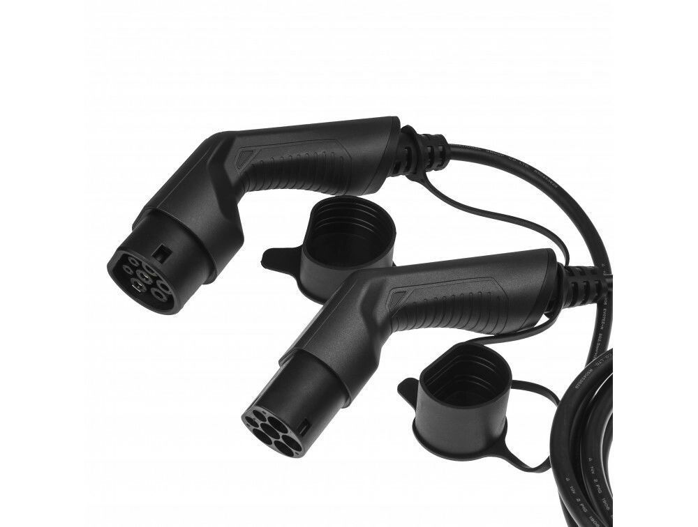 Universele oplaadkabel Type 2 voor elektrische auto’s en plug-in hybrides met een vermogen tot 22 kW, driefase 32 A, met een lengte van 5 m. Duurzame constructie met een levensduur tot 10.000 aansluitingen, IP55-bescherming en compatibel met de meeste Europese laadstations.