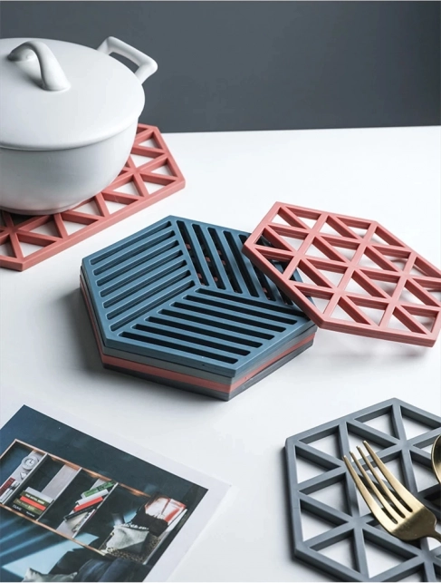 Het siliconen materiaal met reliëf voorkomt wegglijden en beschermt oppervlakken tegen krassen en hitte.
