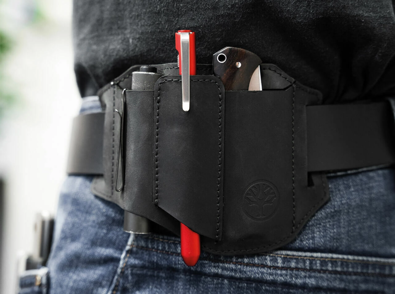Stijlvolle etui voor EDC-liefhebbers die functionaliteit combineert met de premium afwerking van het merk BÖKER. Het grote hoofdvak biedt plaats aan een zakmes met een handgreep tot 10 cm, twee extra onderaan open vakken zijn ideaal voor een zaklamp en een pen. Nubuckleer voelt prettig aan, is duurzaam en ontwikkelt in de loop der tijd een unieke patina.