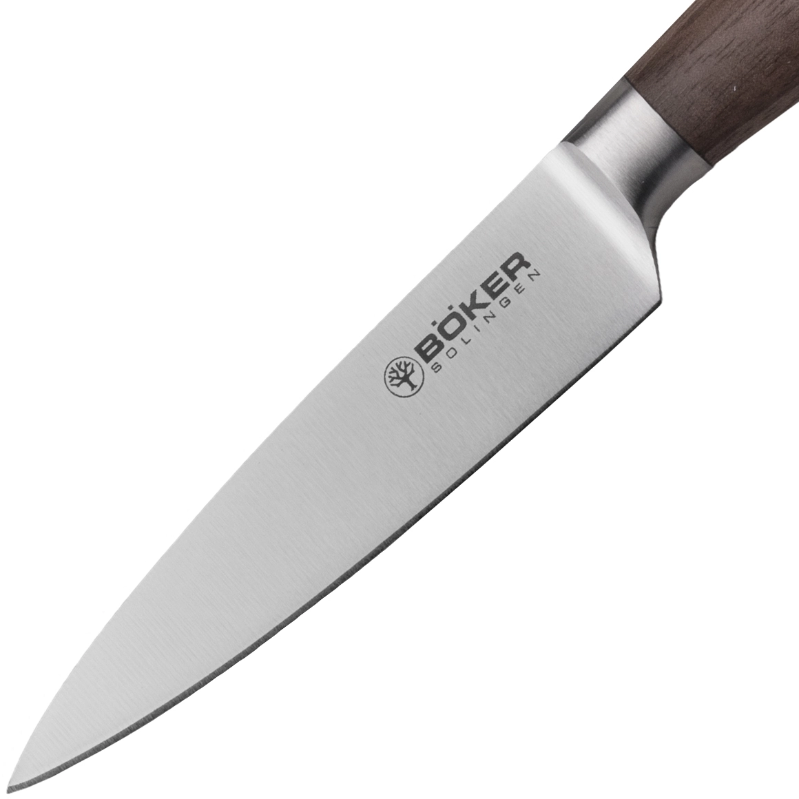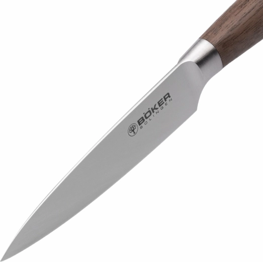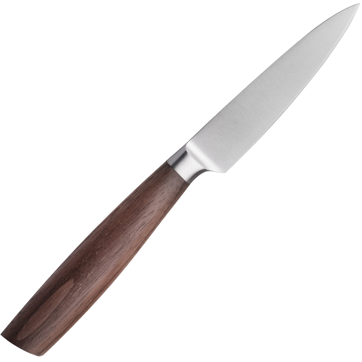 Het lemmet van beproefd Duits staal X50CrMoV15 is corrosiebestendig, blijft lang scherp en is eenvoudig te onderhouden. Het natuurlijk gevormde handvat van walnotenhout biedt een comfortabele en zekere greep, gewaardeerd door zowel thuiskoks als veeleisende gebruikers.