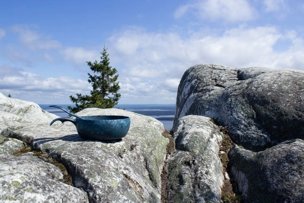 De KUPILKA kom in de vorm van een traditionele kuksa is gemaakt van het innovatieve materiaal Kareline® (50% dennenhout, 50% thermoplast). Daardoor is hij sterk, licht en uitstekend bestand tegen veeleisende omstandigheden in de natuur. Eenvoudig te reinigen, neemt geen vocht of geuren op en behoudt langdurig zijn vorm en kleur.
