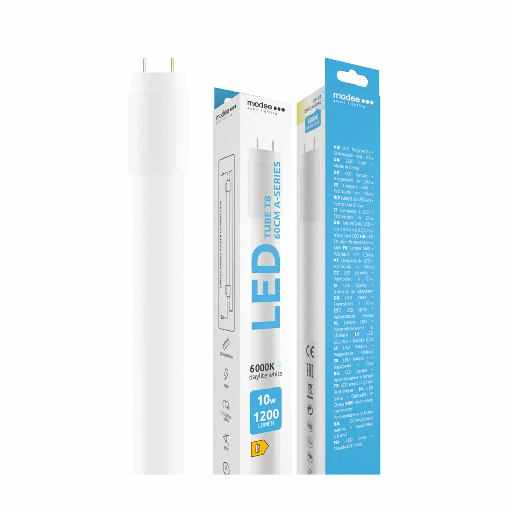 De glazen LED-buis T8 van Modee Smart Lighting biedt energiezuinige verlichting met een vermogen van 10 W en een helderheid van 1200 lm. Hij straalt koel wit licht 6000 K uit, ideaal voor werkruimtes, garages en technische ruimtes. Dankzij de hoge lichtopbrengst en lage energieverbruik zorgt hij voor gelijkmatige en betrouwbare verlichting.