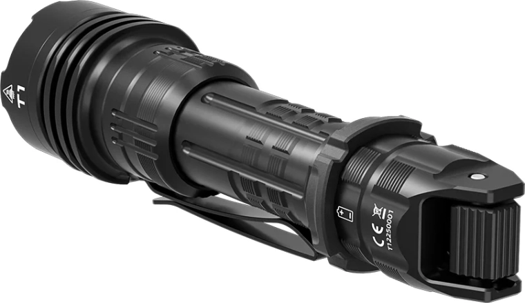 De bediening is snel en intuïtief dankzij de achterste hendelschakelaar, die directe moduswissel en snelle toegang tot tactische functies mogelijk maakt. De voeding wordt verzorgd door een 18650 (3100 mAh) accu met handig USB‑C opladen. De mechanisch afgedichte poort beschermt tegen stof en vocht, waardoor de zaklamp de IP68‑classificatie haalt en valbestendig is tot 1,5 m.
