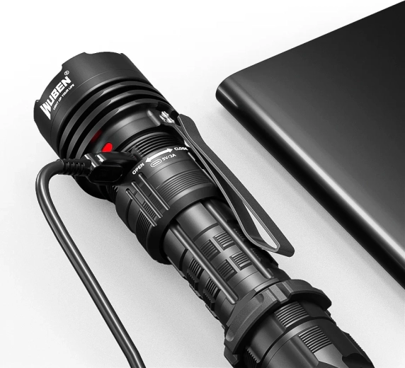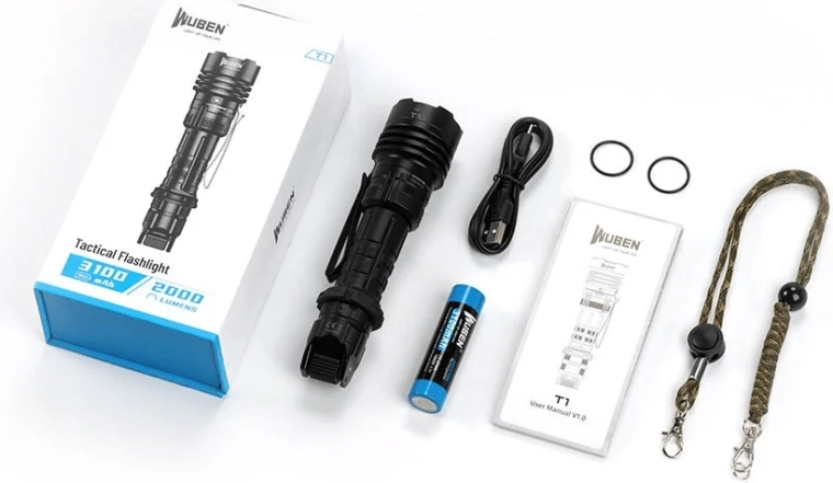 De krachtige tactische zaklamp Wuben T1 biedt tot 2000 lm, een reikwijdte tot 498 m en een lange werktijd tot 100 uur. Dankzij de unieke hendelschakelaar schakel je snel tussen outdoor en tactische modus. Voeding via een 18650 3100 mAh accu met opladen via USB‑C, robuuste behuizing met IP68 en schokbestendigheid tot 1,5 m maken het een betrouwbare keuze voor trekking, kamperen, jacht en zelfverdediging.