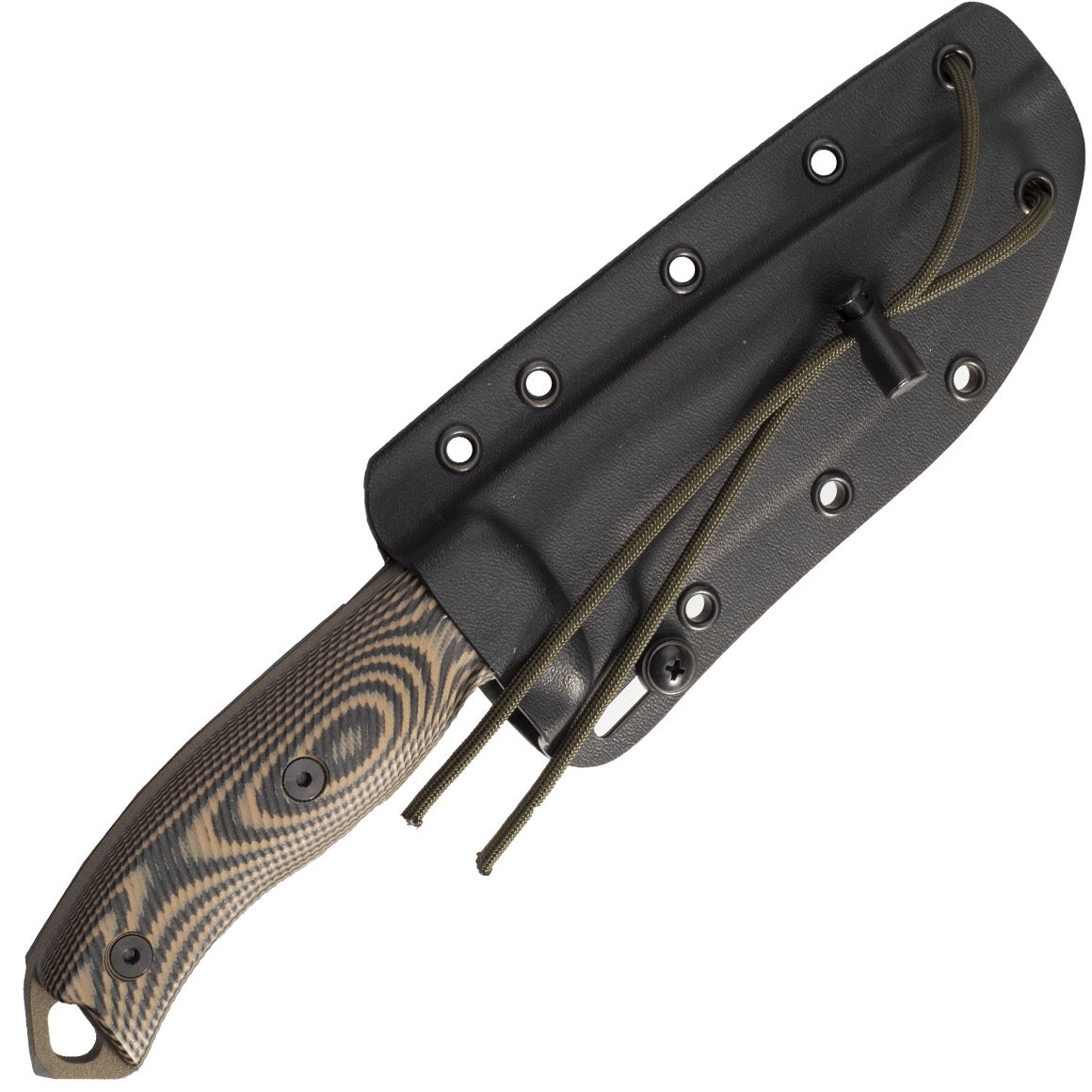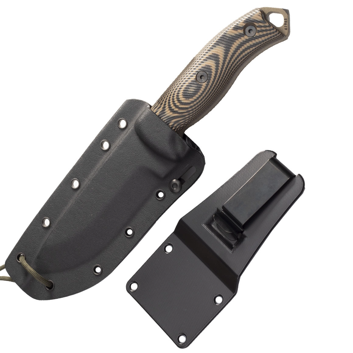 De hoogwaardige Kydex schede met meerdere montageopeningen maakt variabel dragen aan de riem en bevestiging aan uitrusting mogelijk. Daardoor is de ESEE Model 5 een betrouwbare partner voor bushcraft, survival, EDC in zware omstandigheden en reddingssituaties.